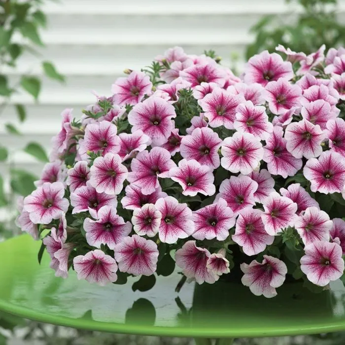 In Florida, petunias are a popular winter annual. Their long flowering period, the wide array of colors and forms available, and the ease with which they grow make them a favorite among gardeners. Petunias are one of the most popular garden flowers for both borders and containers. They are prolific bloomers, although some forms require deadheading to keep them going. Petunia flowers are also incredibly variable in terms of size, shape, hue, and color pattern; some petunias even have sweet fragrances. While some varieties have small flowers, only about an inch in diameter, others have flowers as large as 6 inches across. Flowers can be ruffled, fringed, or double, in almost any color imaginable. Some flowers will be one solid color while others have contrasting veins or edges, and in some varieties the flower even has a star pattern. This variety of petunias makes them quite versatile in the landscape. They can be used for color masses, in containers, hanging baskets, or as a seasonal groundcover.