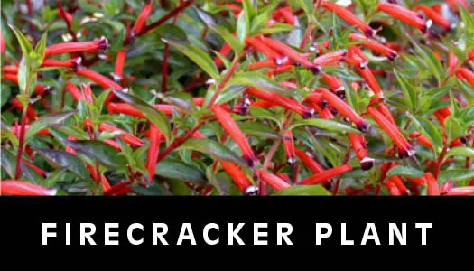 The Firecracker plant has a natural and unstructured growth pattern with cascading fiery red blooms that catch the attention of hummingbirds and butterflies. The tubular flowers, which are primarily red, resemble a burst of fireworks, giving the plant a striking and attractive appearance.
